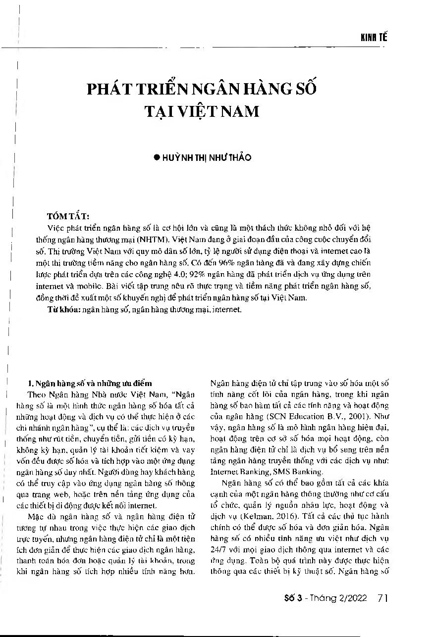 Phát triển ngân hàng số trong quá trình chuyển đổi số nền kinh tế tại Việt Nam = The development of digital banking in Vietnam in the context of the country&; 39;s digital transformation process