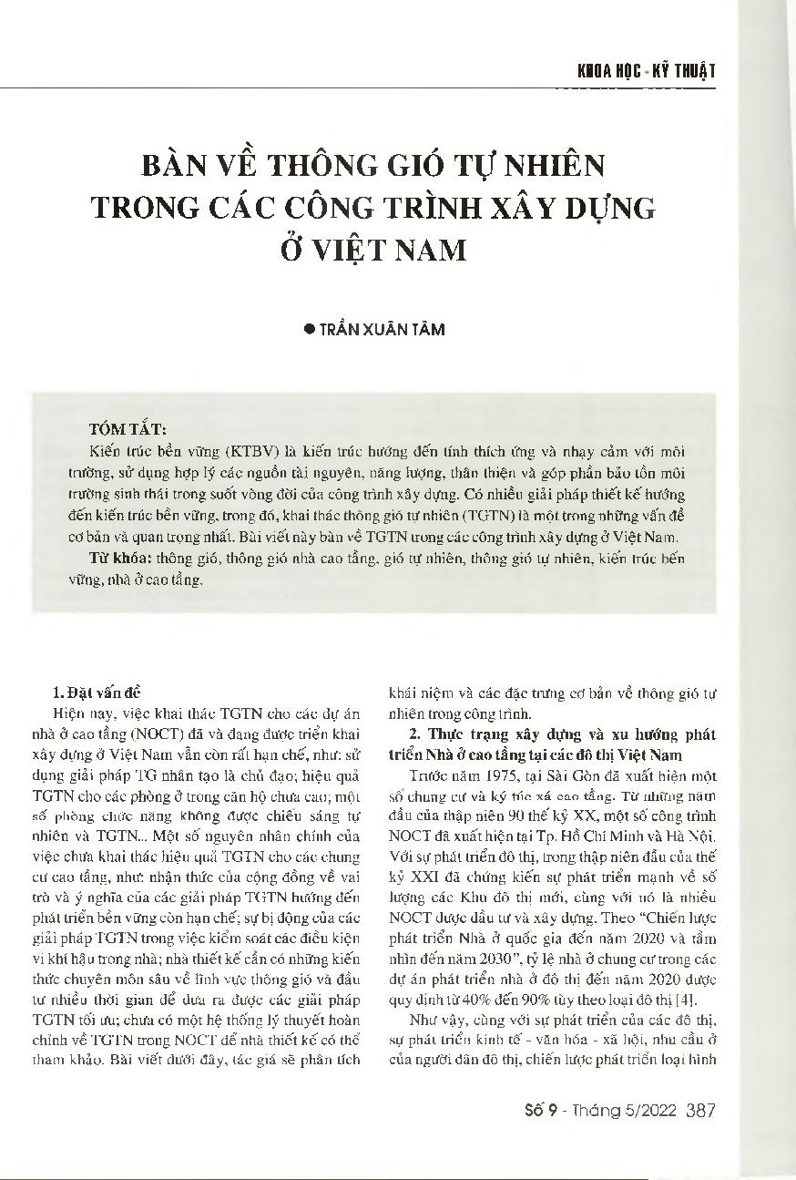 Bàn về thông gió tự nhiên trong các công trình xây dựng ở Việt Nam = The implementation of natural ventilation in buildings in Vietnam