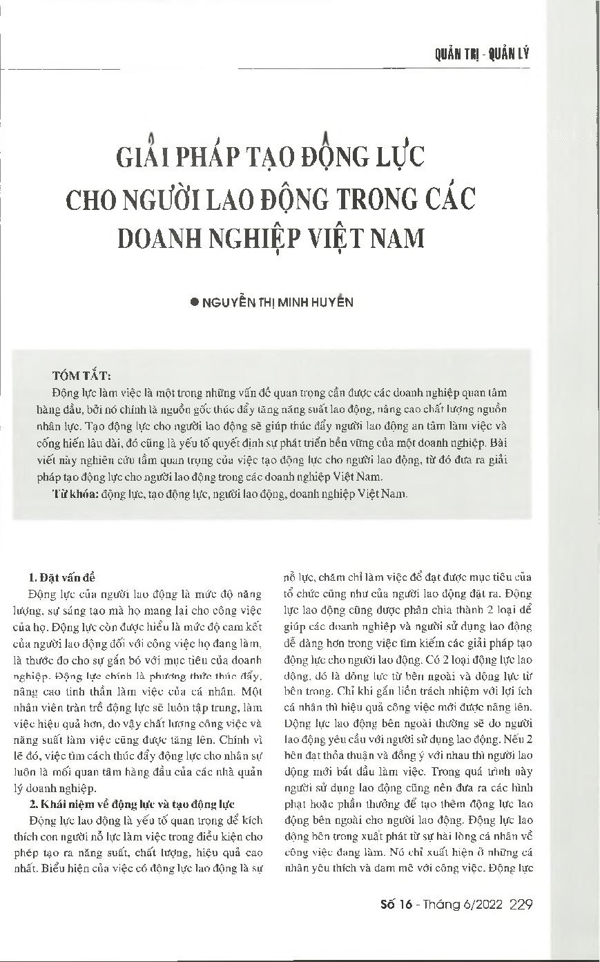 Giải pháp tạo động lực cho người lao động trong các doanh nghiệp Việt Nam = Some solutions to motivate employees in Vietnamese enterprises