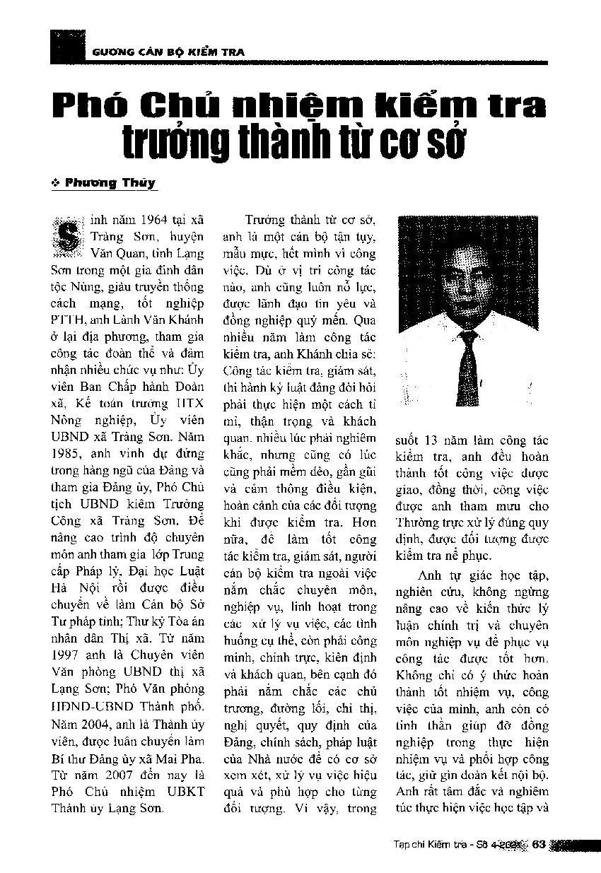 Phó Chủ nhiệm kiểm tra trưởng thành từ cơ sở