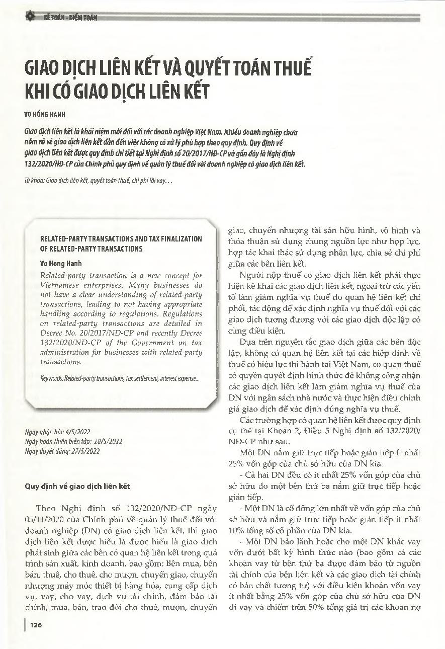 Giao dịch liên kết và quyết toán thuế khi có giao dịch liên kết = Related-party transactions and tax finalization of related-party transactions