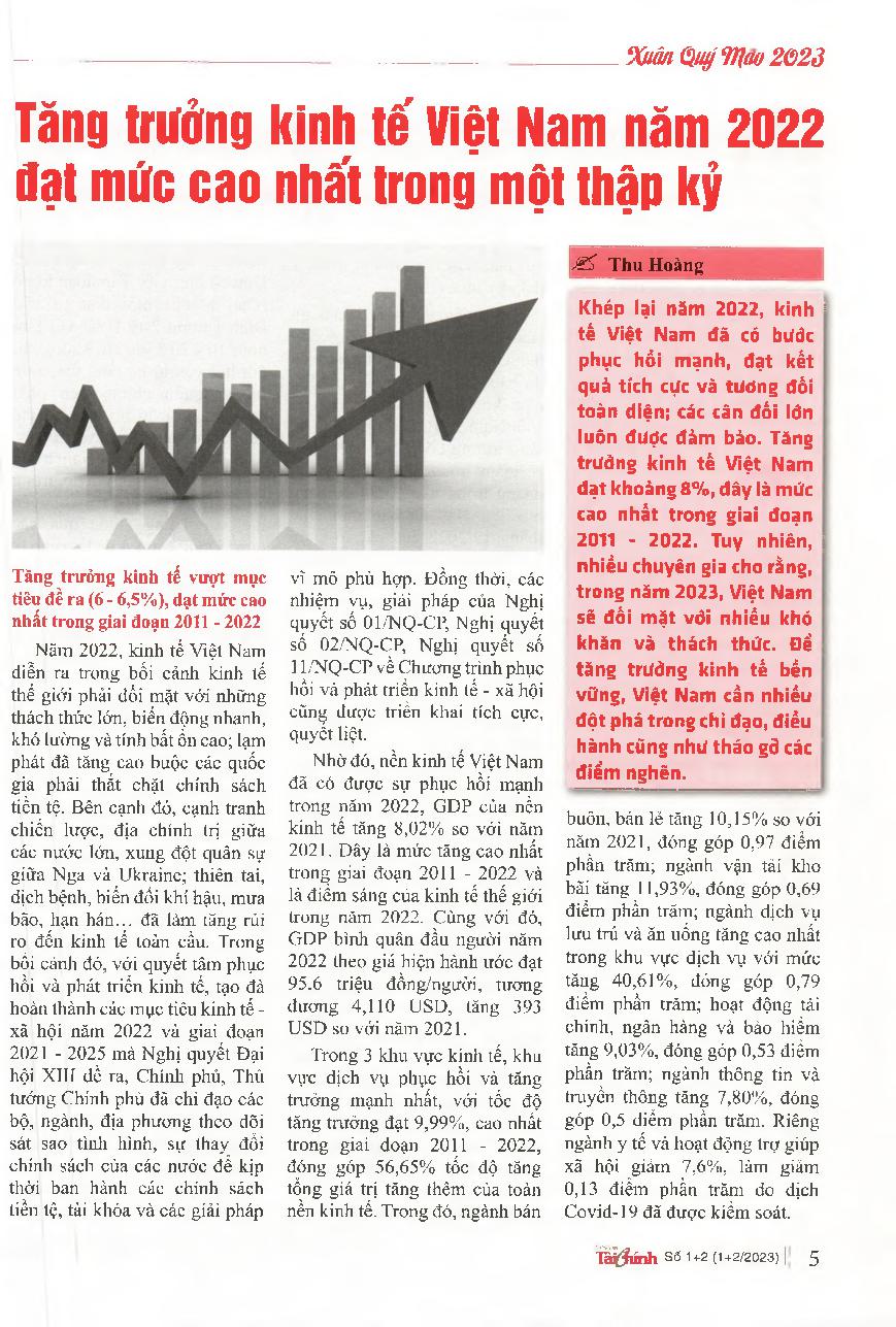 Tăng trưởng kinh tế Việt Nam năm 2022 đạt mức cao nhất trong một thập kỷ