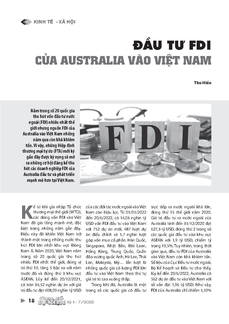 Đầu tư FDI của Australia vào Việt Nam = Australian FDI in Vietnam