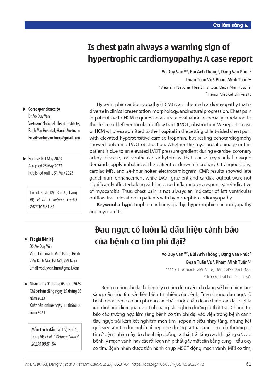 Đau ngực có luôn là dấu hiệu cảnh báo của bệnh cơ tim phì đại? = Is chest pain always a warning sign of hypertrophic cardiomyopathy: A case report