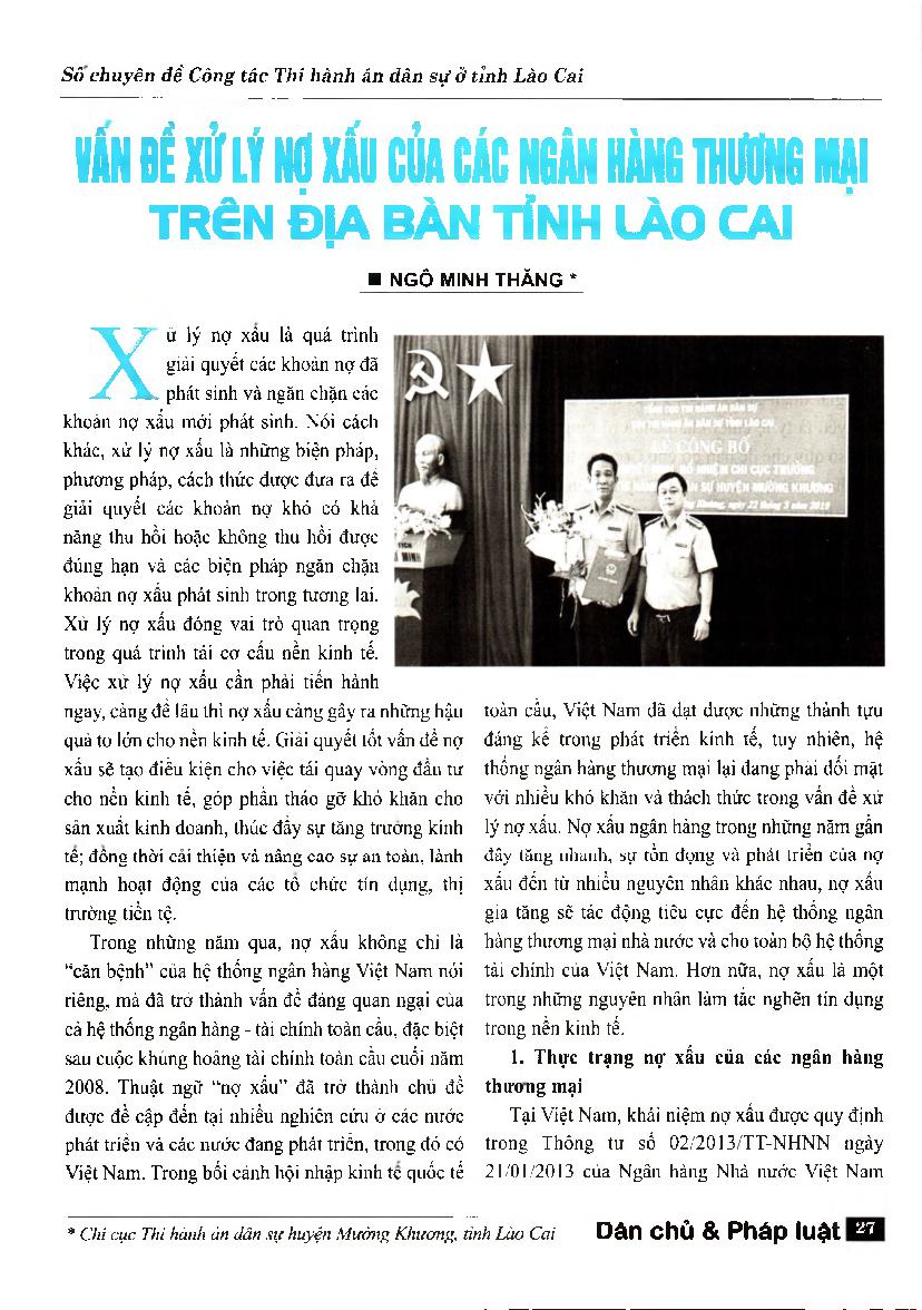 Vấn đề xử lý nợ xấu của các ngân hàng thương mại trên địa bàn tỉnh Lào Cai