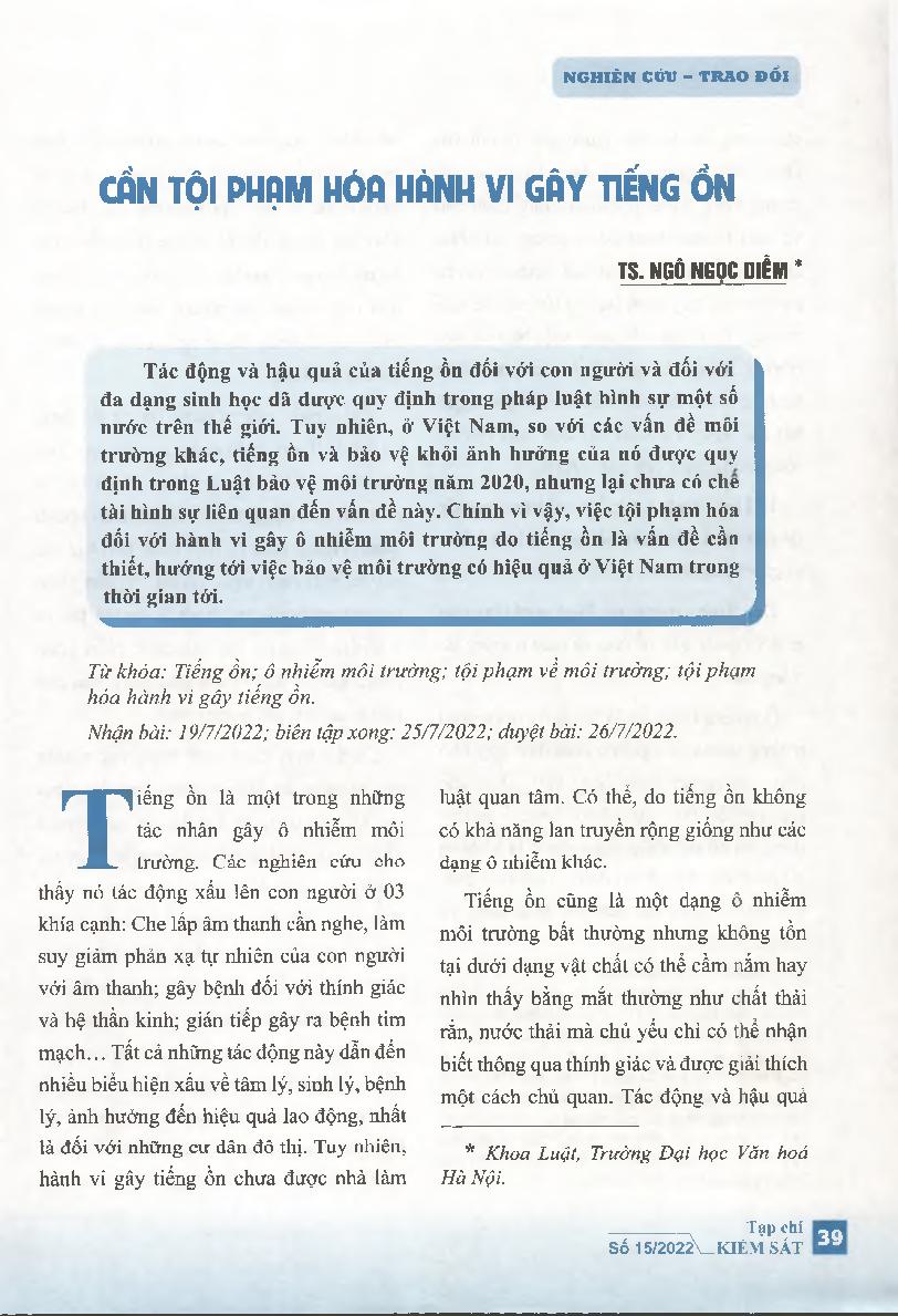 Cần tội phạm hóa hành vi gây tiếng ồn