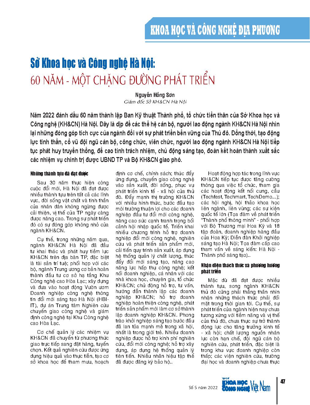 Sở Khoa học và Công nghệ Hà Nội: 60 năm - một chặng đường phát triển = Hanoi Department of Science and Technology: 60 years - a development journey