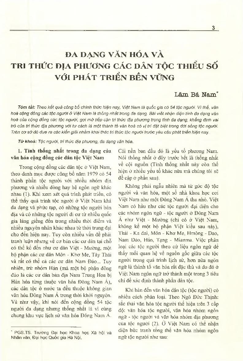Đa dạng văn hóa và tri thức địa phương các dân tộc thiểu số với phát triển bền vững