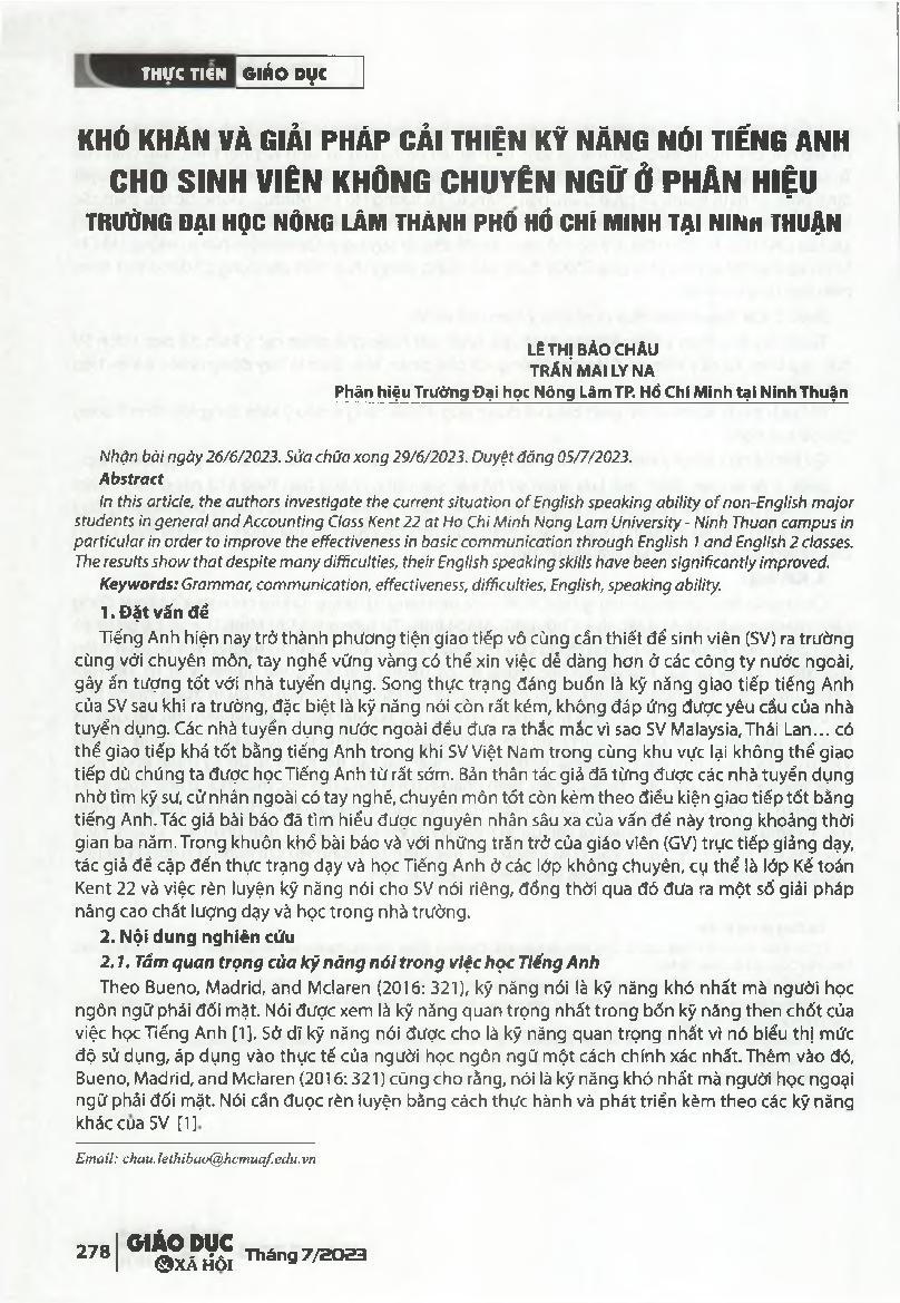 Tìm hiểu về nhận thức của sinh viên và giáo viên về hiệu quả của việc dạy và học kỹ năng nói tiếng Anh theo hướng dạy riêng biệt và hướng dạy tích hợp cho sinh viên chuyên ngành Ngôn ngữ Anh tại trường Đại học Quy Nhơn