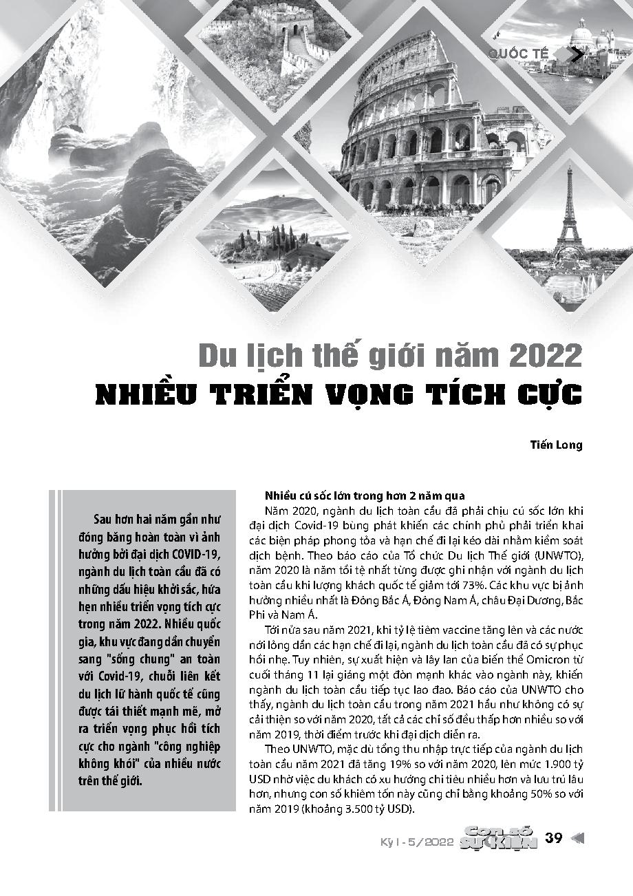 Du lịch thế giới năm 2022 - Nhiều triển vọng tích cực