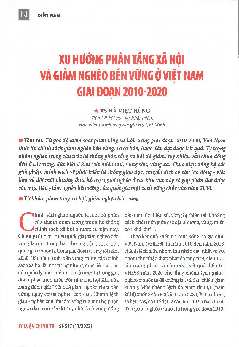 Xu hướng phân tầng xã hội và giảm nghèo bền vững ở Việt Nam giai đoạn 2010-2020