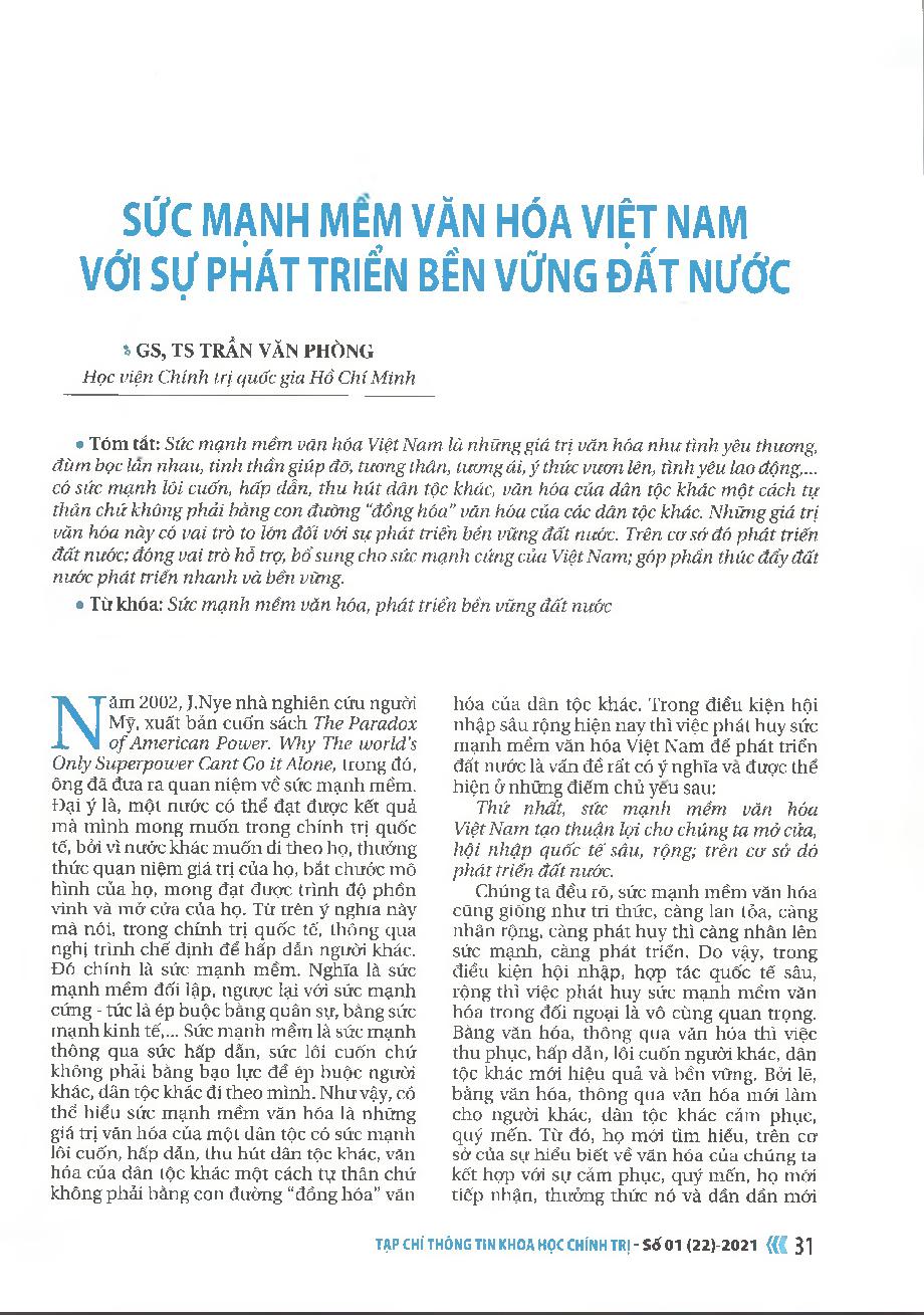 Sức mạnh mềm văn hóa Việt Nam với sự phát triển bền vững đất nước