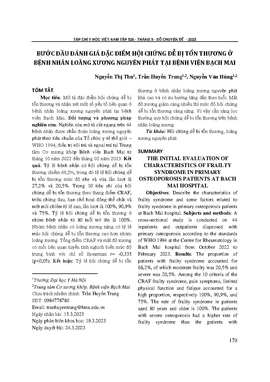 Bước đầu đánh giá đặc điểm hội chứng dễ bị tổn thương ở bệnh nhân loãng xương nguyên phát tại Bệnh viện Bạch Mai