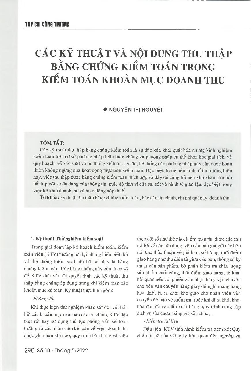 Các kỹ thuật và nội dung thu thập bằng chứng kiểm toán trong kiểm toán khoản mục doanh thu = Audit evidence collection techniques and requirements in a revenue audit