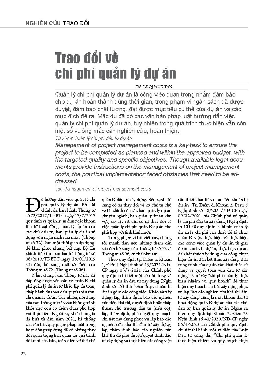 Trao đổi về chi phí quản lý dự án = Talk about project management costs