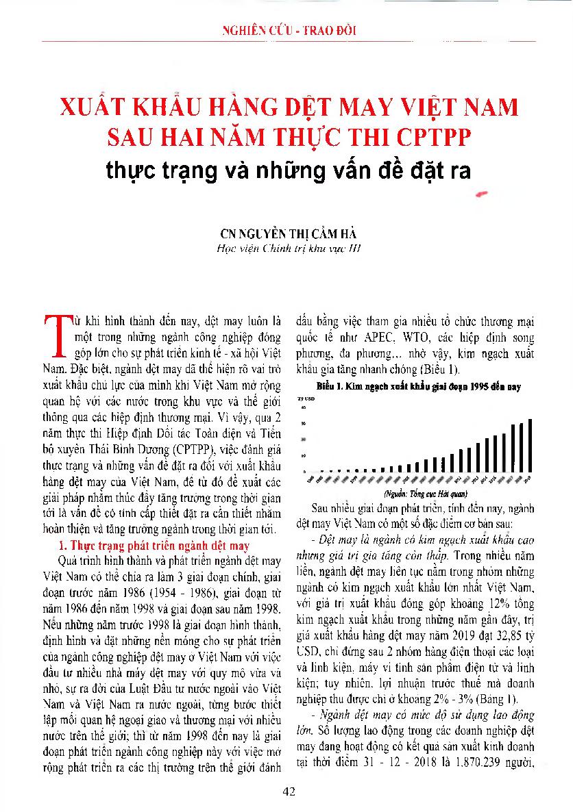 Xuất khẩu hàng dệt may Việt Nam sau hai năm thực thi CPTPP thực trạng và những vấn đề đặt ra
