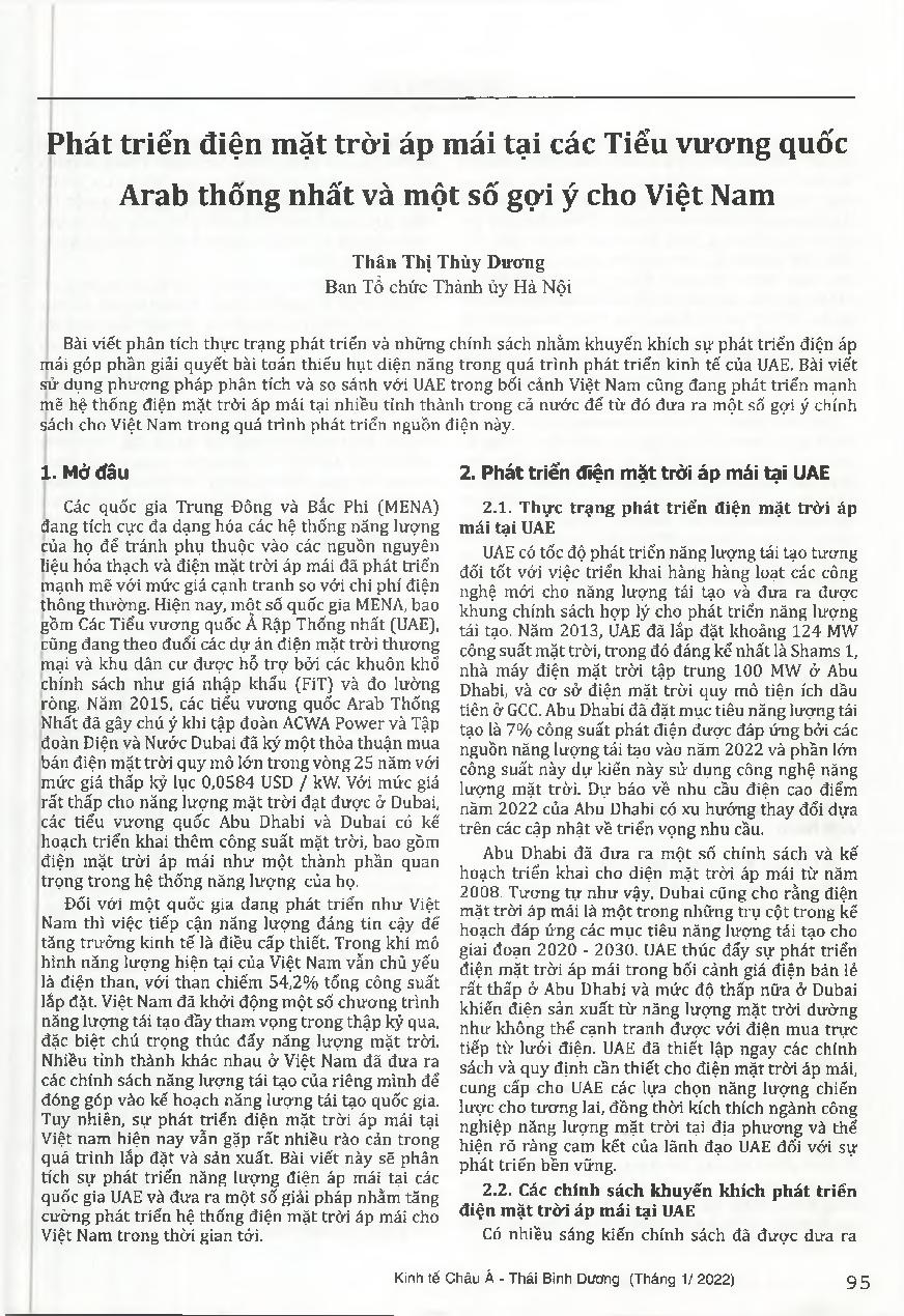 Phát triển điện mặt trời áp mái tại các Tiểu vương quốc Arab thống nhất và một số gợi ý cho Việt Nam