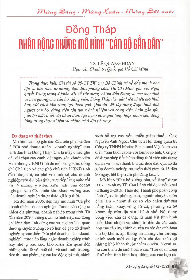 Đồng Tháp nhân rộng những mô hình “cán bộ gần dân”