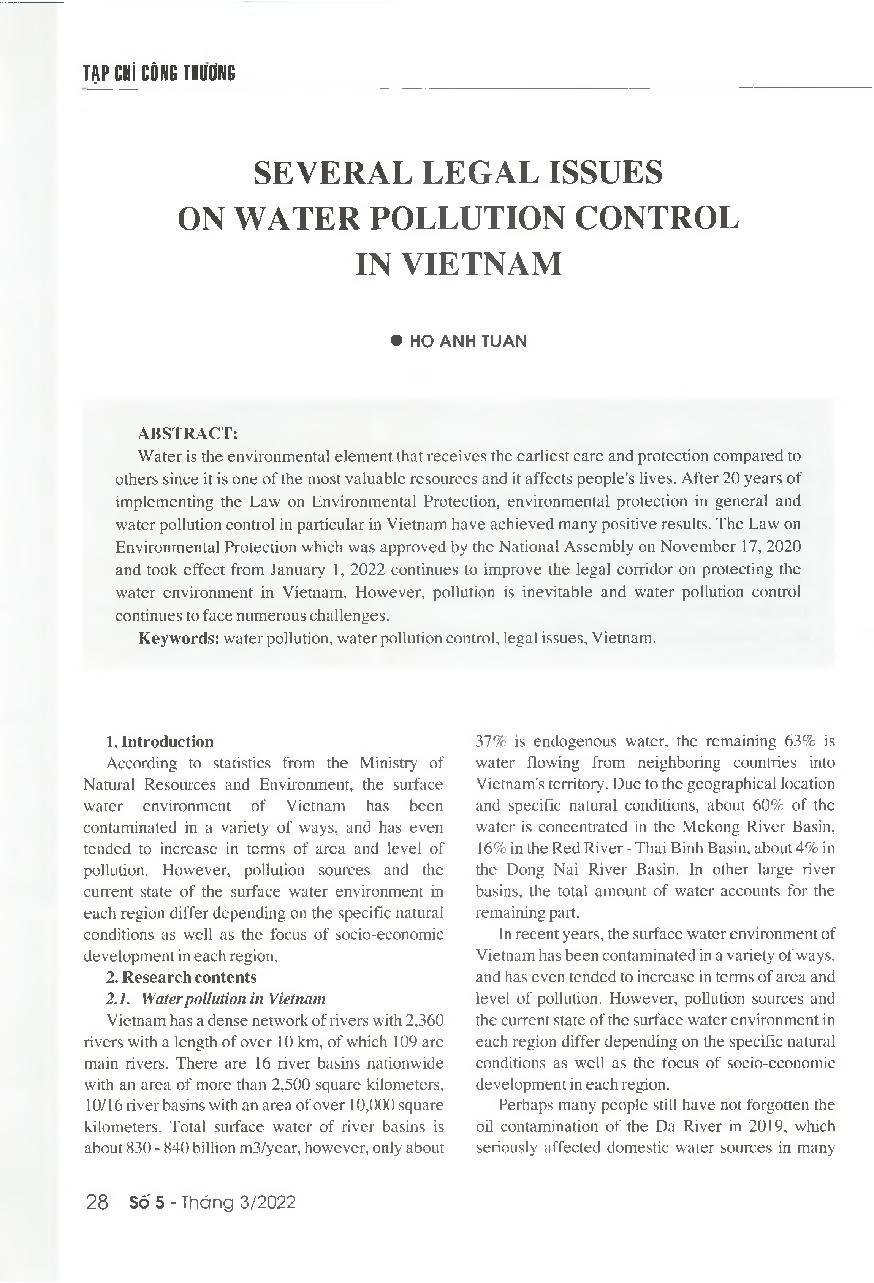 Một số vấn đề pháp lý về kiểm soát ô nhiễm nước tại Việt Nam = Several legal issues on water pollution control in Vietnam
