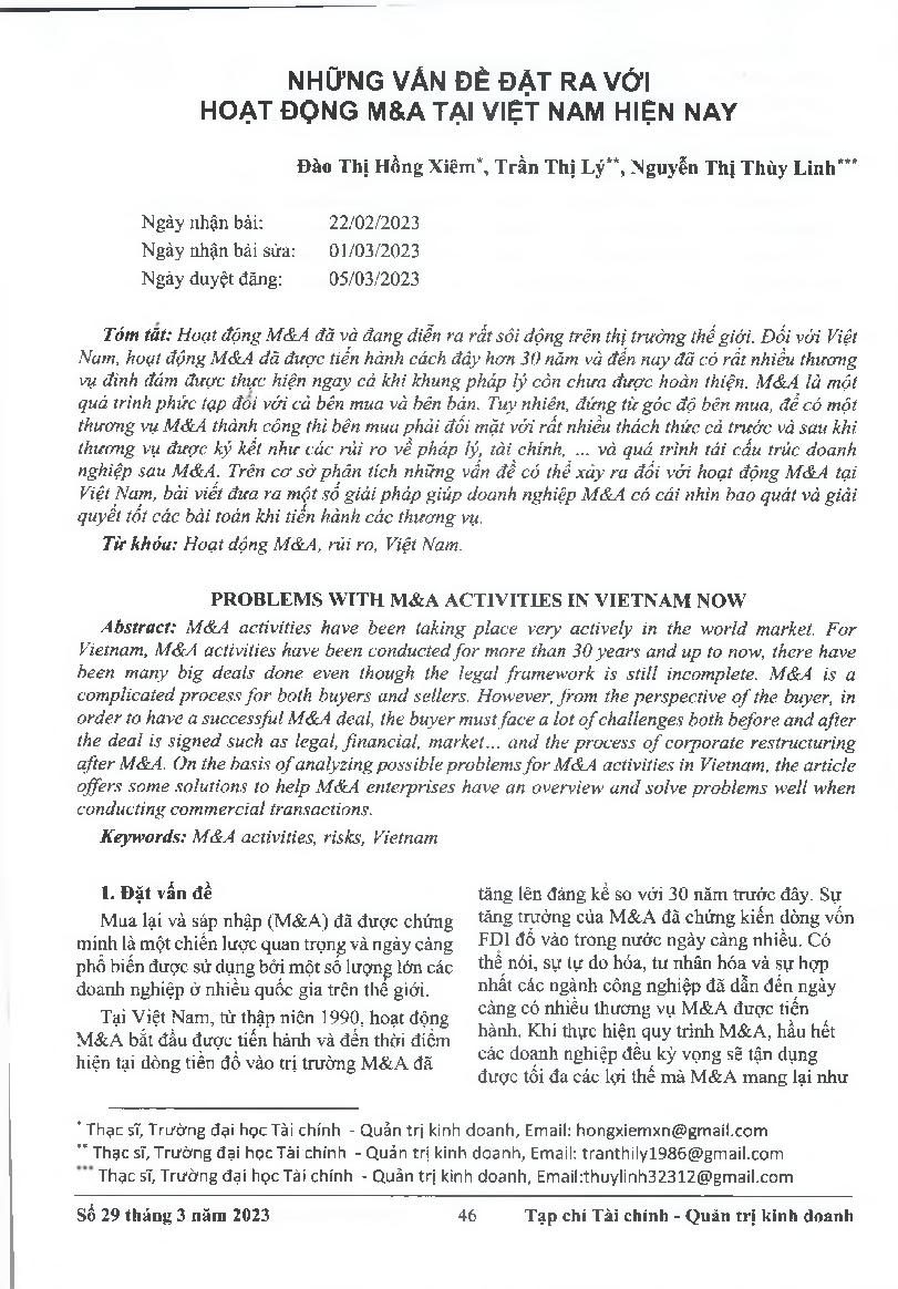 Những vấn đề đặt ra với hoạt động M &A tại Việt Nam hiện nay = Problems with M &A activities in Vietnam now