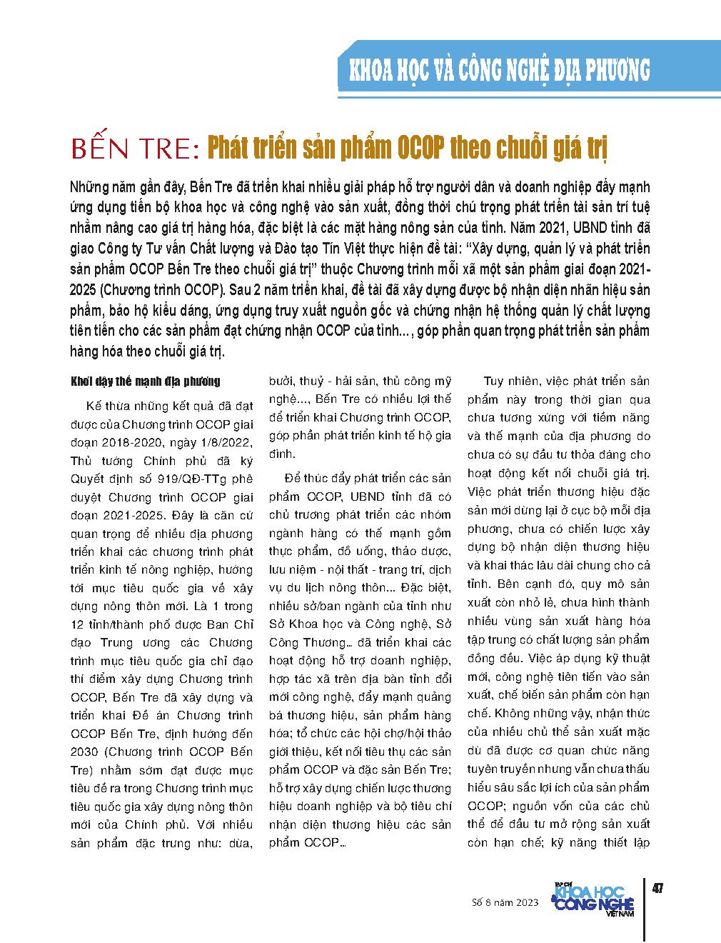 Bến Tre: Phát triển sản phẩm OCOP theo chuỗi giá trị