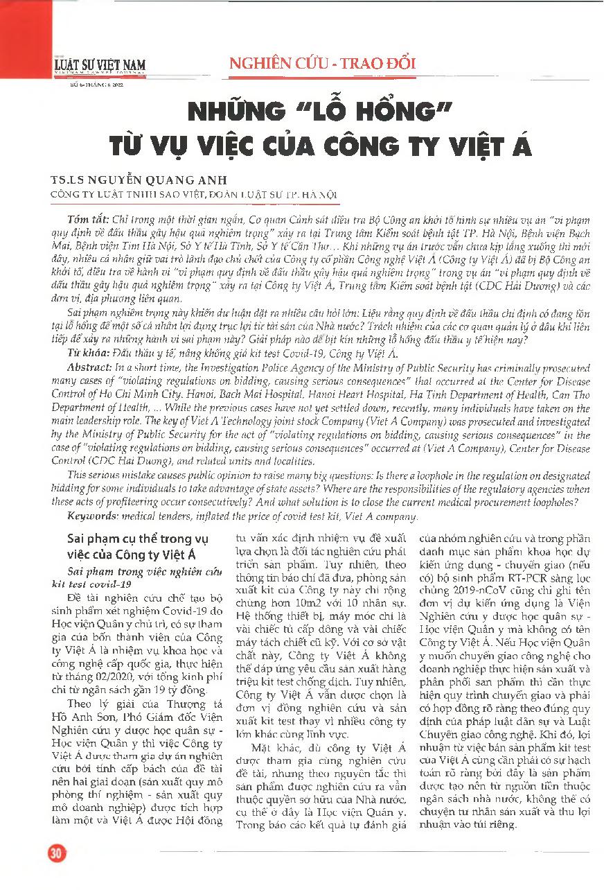 Những "lỗ hổng" từ vụ việc của Công ty Việt Á = Loopholes from the case of Viet A Company