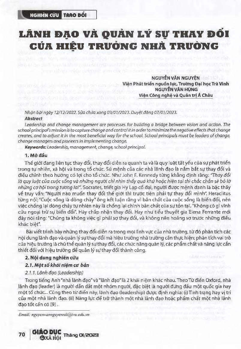 Lãnh đạo và quản lý sự thay đổi của hiệu trưởng nhà trường = Leadership and change management of school principals