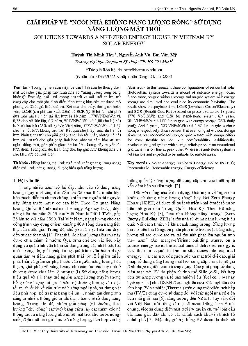 Giải pháp về “ngôi nhà không năng lượng ròng” sử dụng năng lượng mặt trời = Solutions towards a net-zero energy house in vietnam by solar energy
