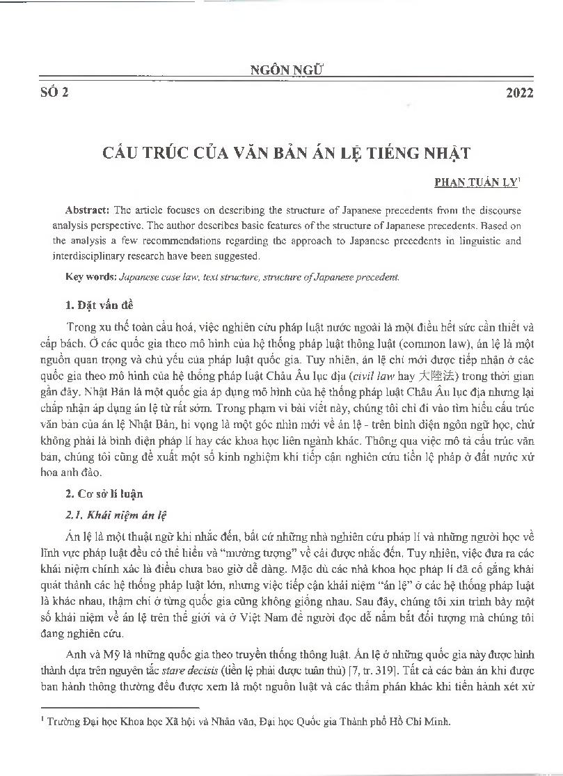 Cấu trúc của văn bản án lệ tiếng Nhật = Text structure of Japanese precedents from a discourse analysis perspective