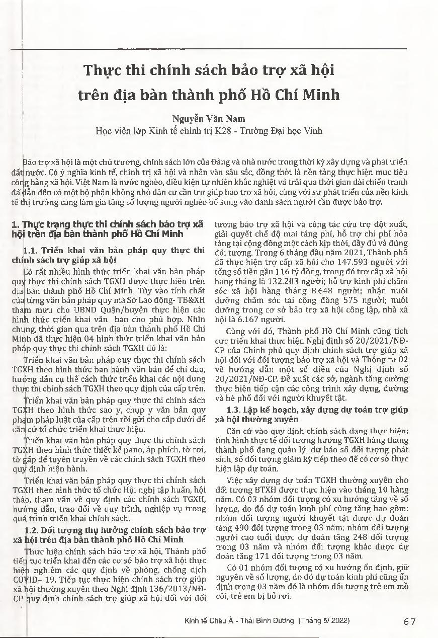 Thực thi chính sách bảo trợ xã hội trên địa bàn thành phố Hồ Chí Minh
