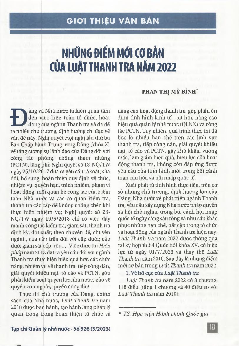Những điểm mới cơ bản của Luật Thanh tra năm 2022 = The key new points of The Inspection Law in 2022