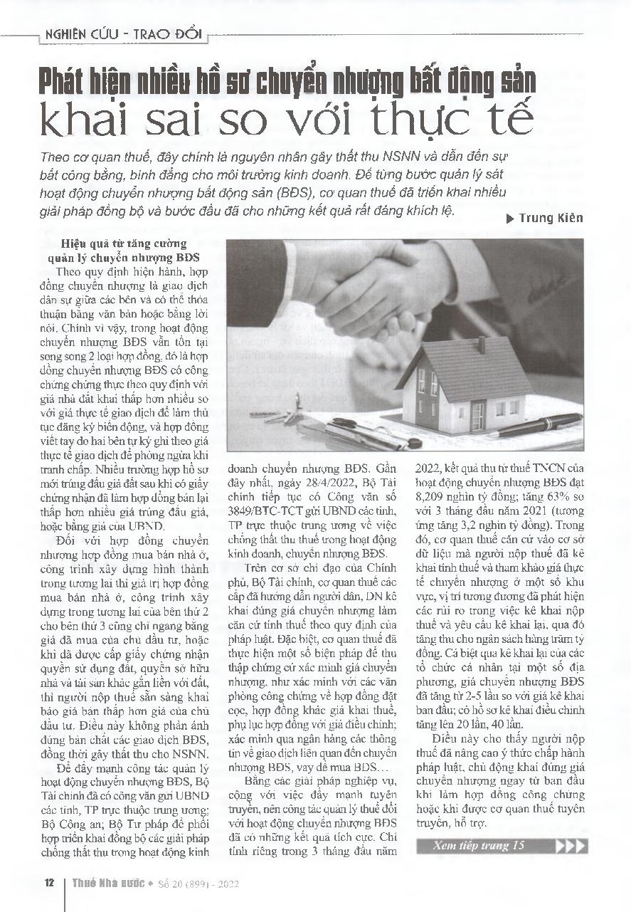 Phát hiện nhiều hồ sơ chuyển nhượng bất động sản khai sai so với thực tế = Detecting many real estate transfer records that are falsely declared compared to reality