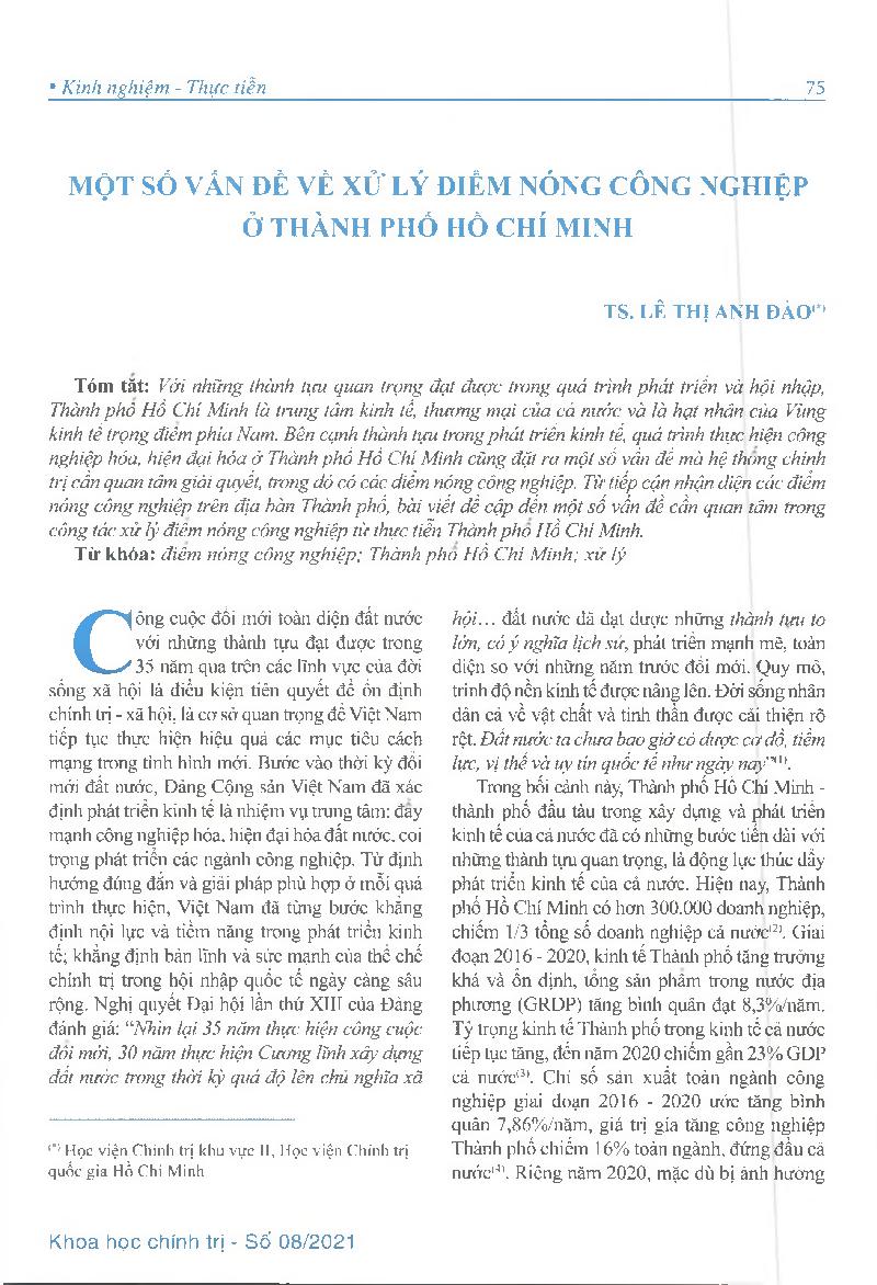 Một số vấn đề về xử lý điểm nóng công nghiệp ở thành phố Hồ Chí Minh