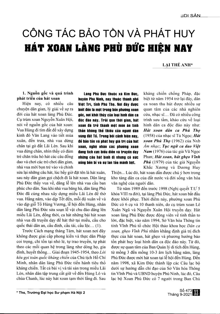 Công tác bảo tồn và phát huy hát xoan làng Phù Đức hiện nay
