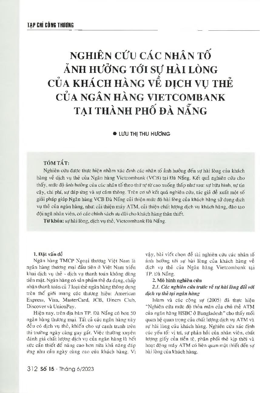 Nghiên cứu các nhân tố ảnh hưởng tới sự hài lòng của khách hàng về dịch vụ thẻ của Ngân hàng Vietcombank tại TP. Đà Nẵng