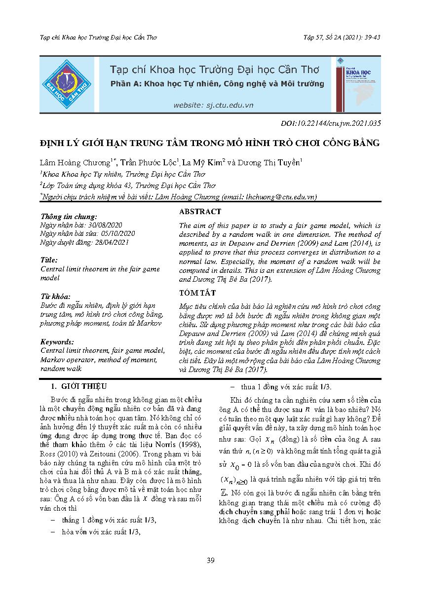 Định lý giới hạn trung tâm trong mô hình trò chơi công bằng = Central limit theorem in the fair game model