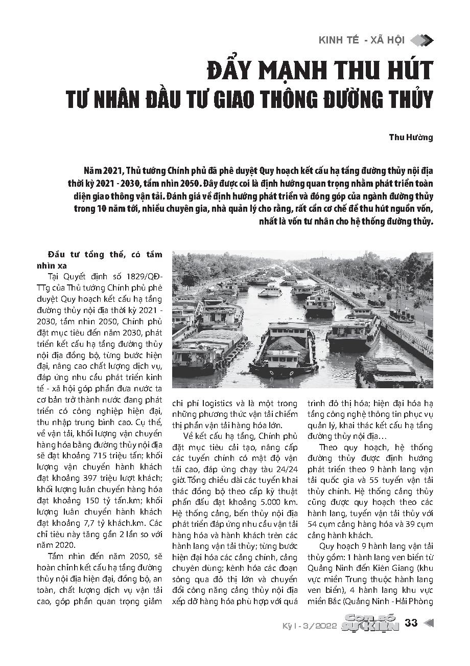 Đẩy mạnh thu hút tư nhân đầu tư giao thông đường thủy