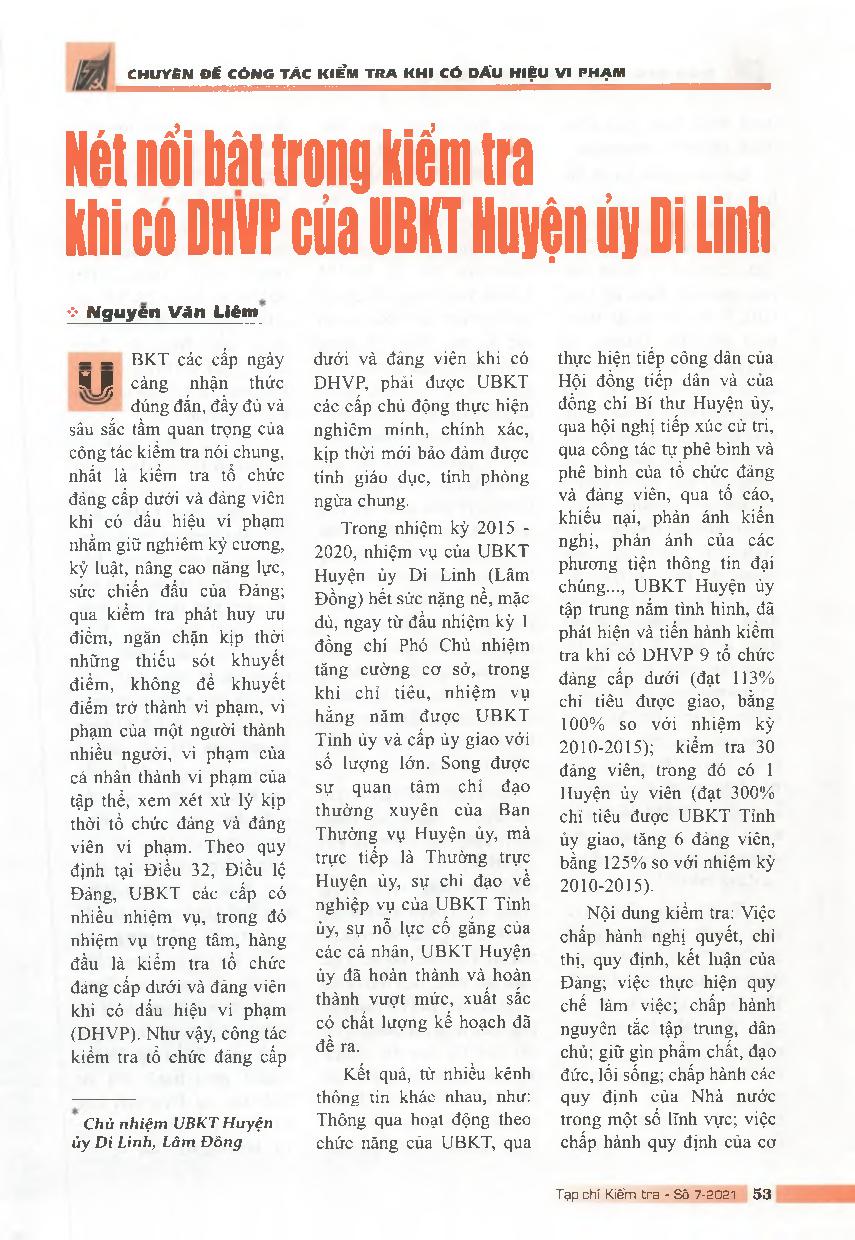 Nét nổi bật trong kiểm tra khi có DHVP của UBKT Huyện ủy Di Linh