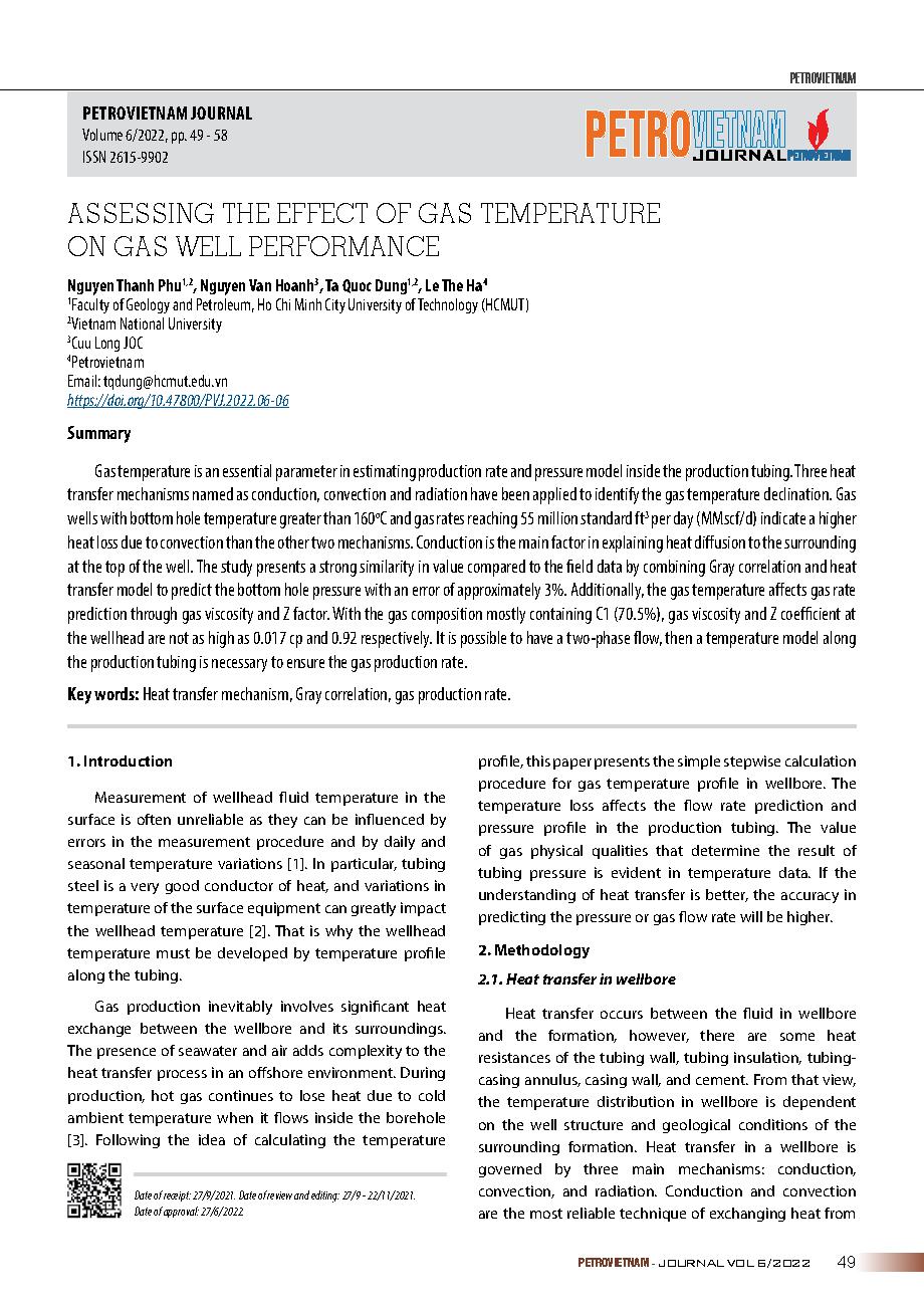 Đánh giá ảnh hưởng của nhiệt độ khí đến hoạt động của giếng khí = Assessing the effect of gas temperature on gas well performance