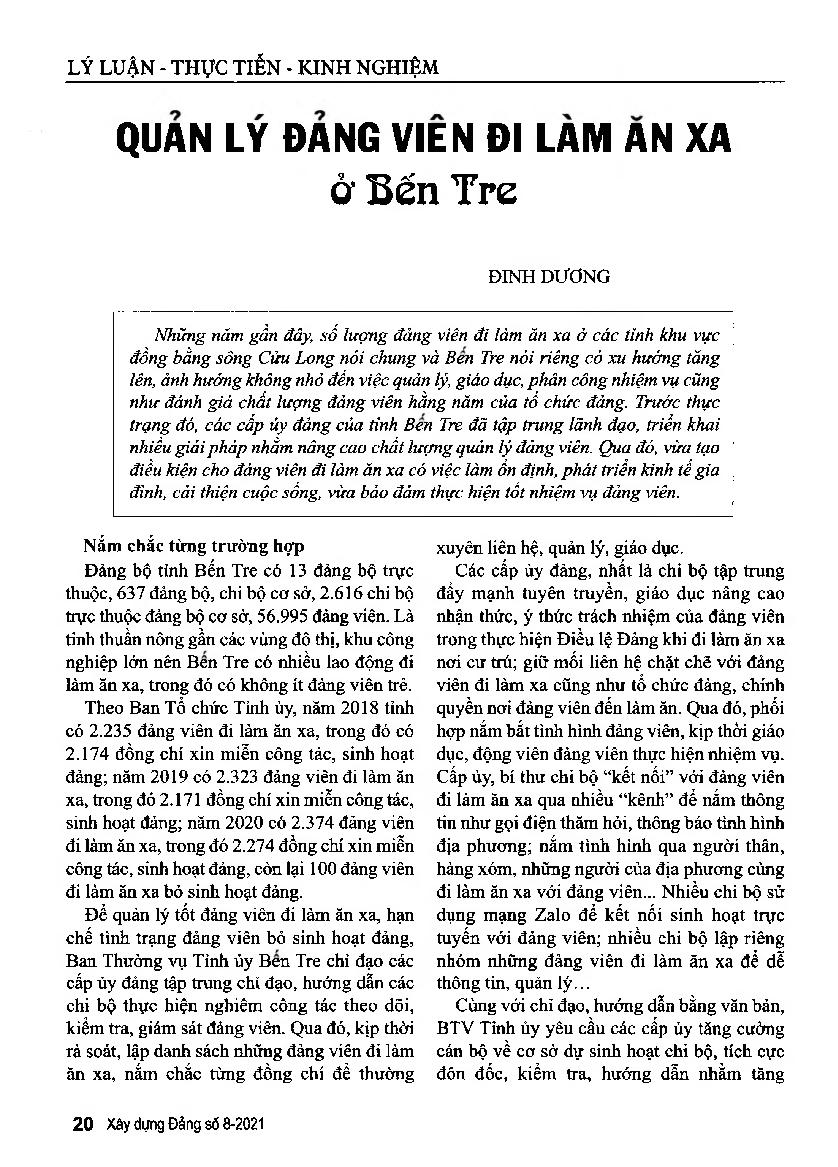 Quản lý đảng viên đi làm ăn xa ở Bến Tre