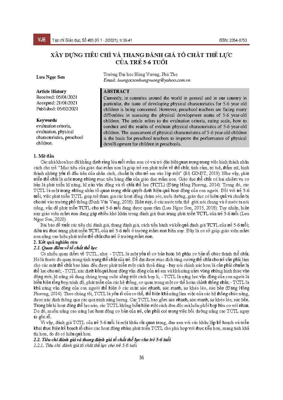 Xây dựng tiêu chí và thang đánh giá tố chất thể lực của trẻ 5-6 tuổi