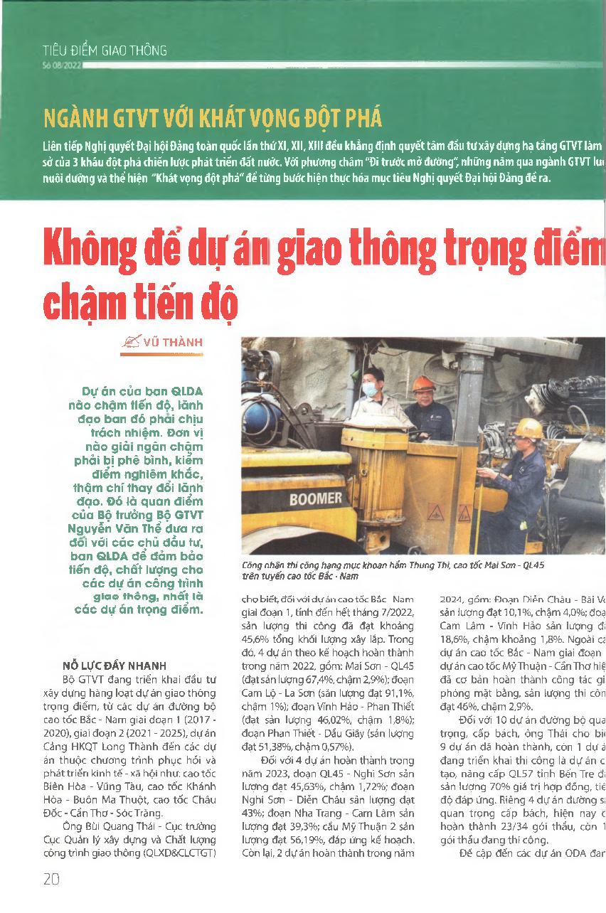 Không để dự án giao thông trọng điểm chậm tiến độ