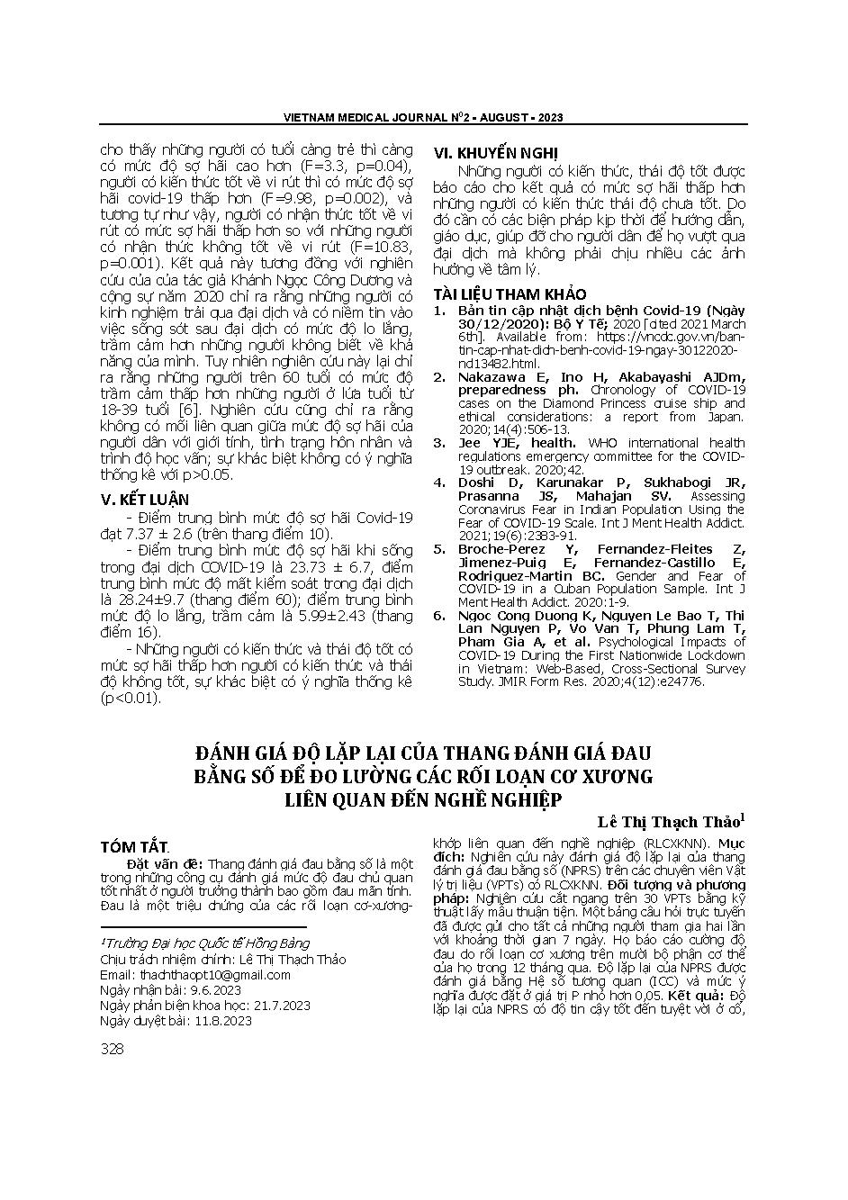 Đánh giá độ lặp lại của thang đánh giá đau bằng số để đo lường các rối loạn cơ xương liên quan đến nghề nghiệp