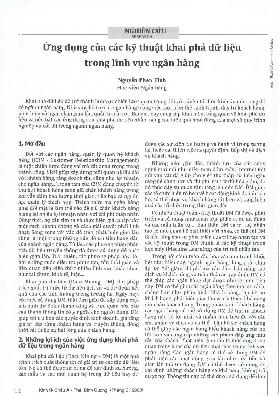 ứng dụng của các kỹ thuật khai phá dữ liệu trong lĩnh vực ngân hàng