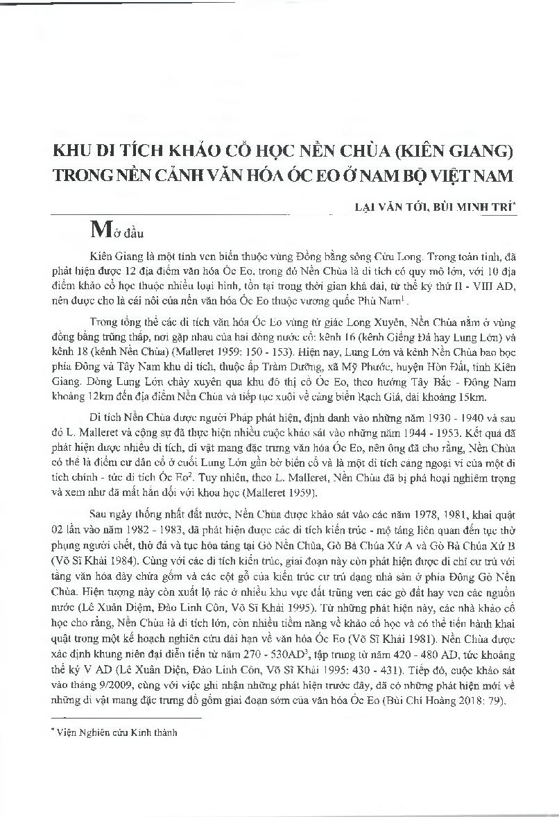 Khu di tích khảo cổ học Nền Chùa (Kiên Giang) trong nền cảnh văn hóa Óc Eo ở Nam Bộ Việt Nam = Archaeological site Nền Chùa (Kiên Giang) in Óc Eo - culture context in Southern Việt Nam