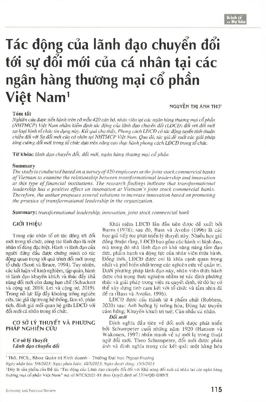 Tác động của lãnh đạo chuyển đổi tới sự đổi mới của cá nhân tại các ngân hàng thương mại cổ phần Việt Nam
