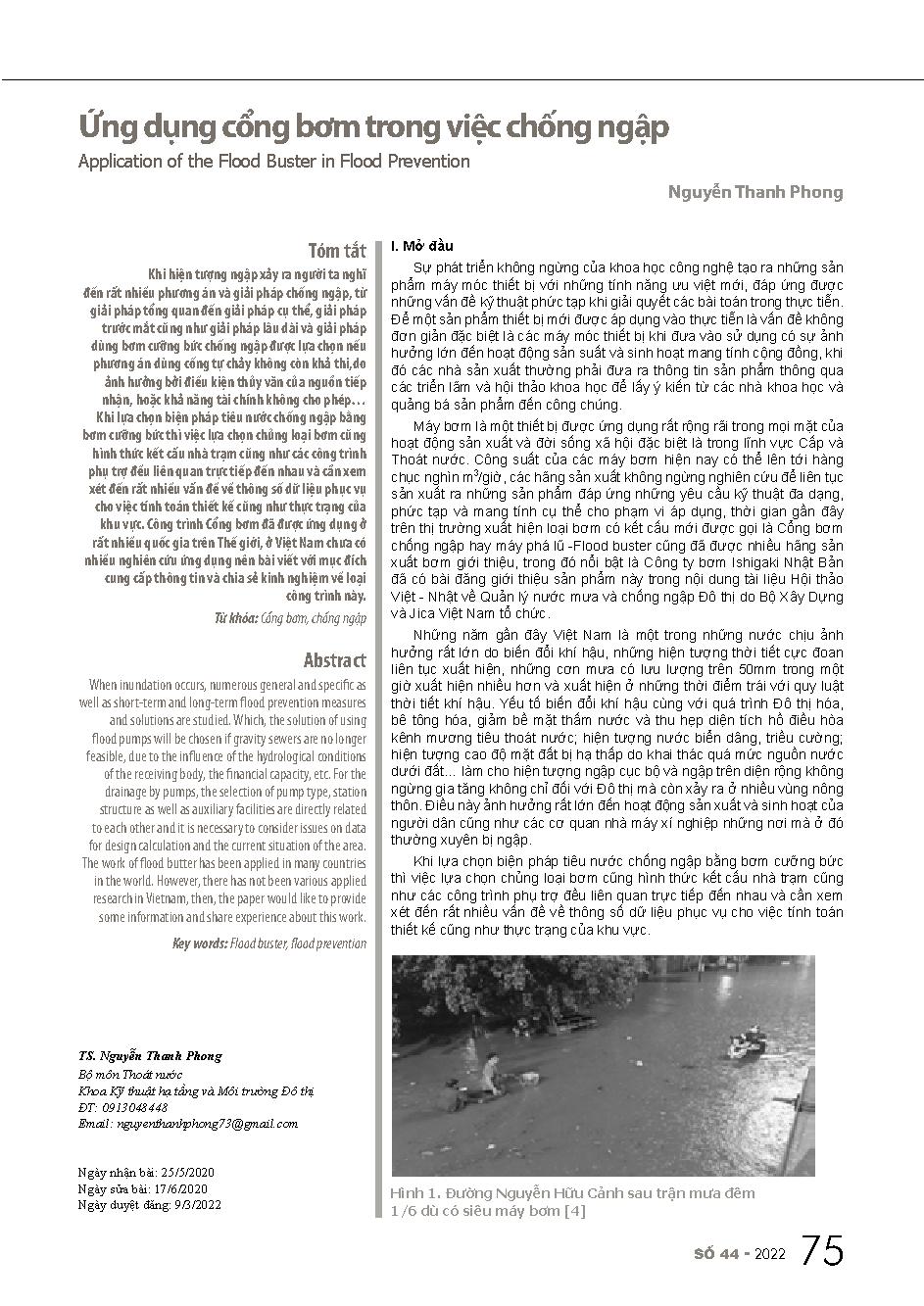 Ứng dụng cổng bơm trong việc chống ngập = Application of the Flood Buster in Flood Prevention