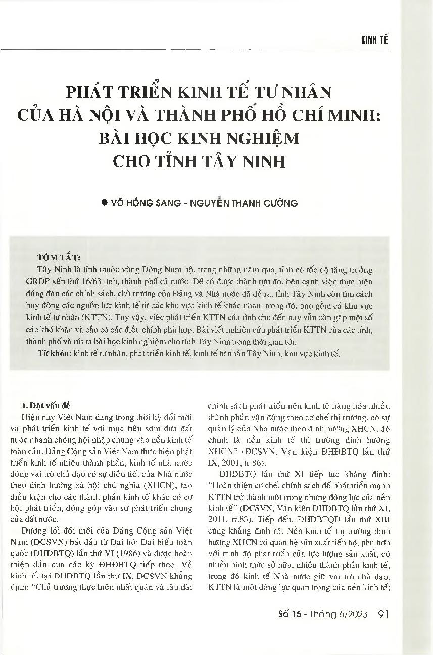 Phát triển kinh tế tư nhân của Hà Nội và Thành phố Hồ Chí Minh: Bài học kinh nghiệm cho tỉnh Tây Ninh