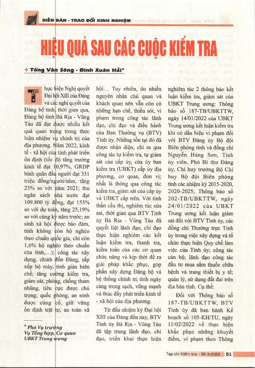 Hiệu quả sau các cuộc kiểm tra