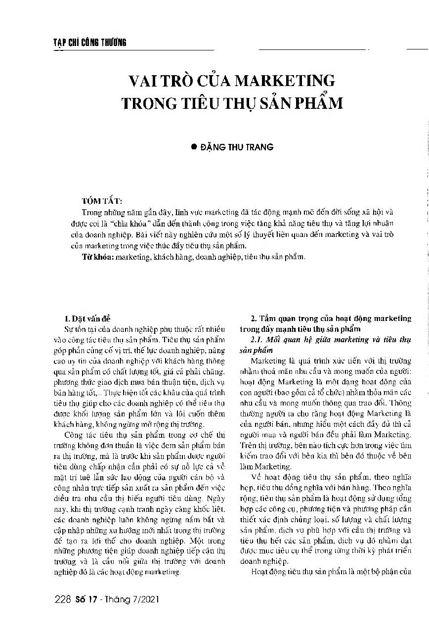 Vai trò của marketing trong tiêu thụ sản phẩm = The role of marketing in promoting product consumption